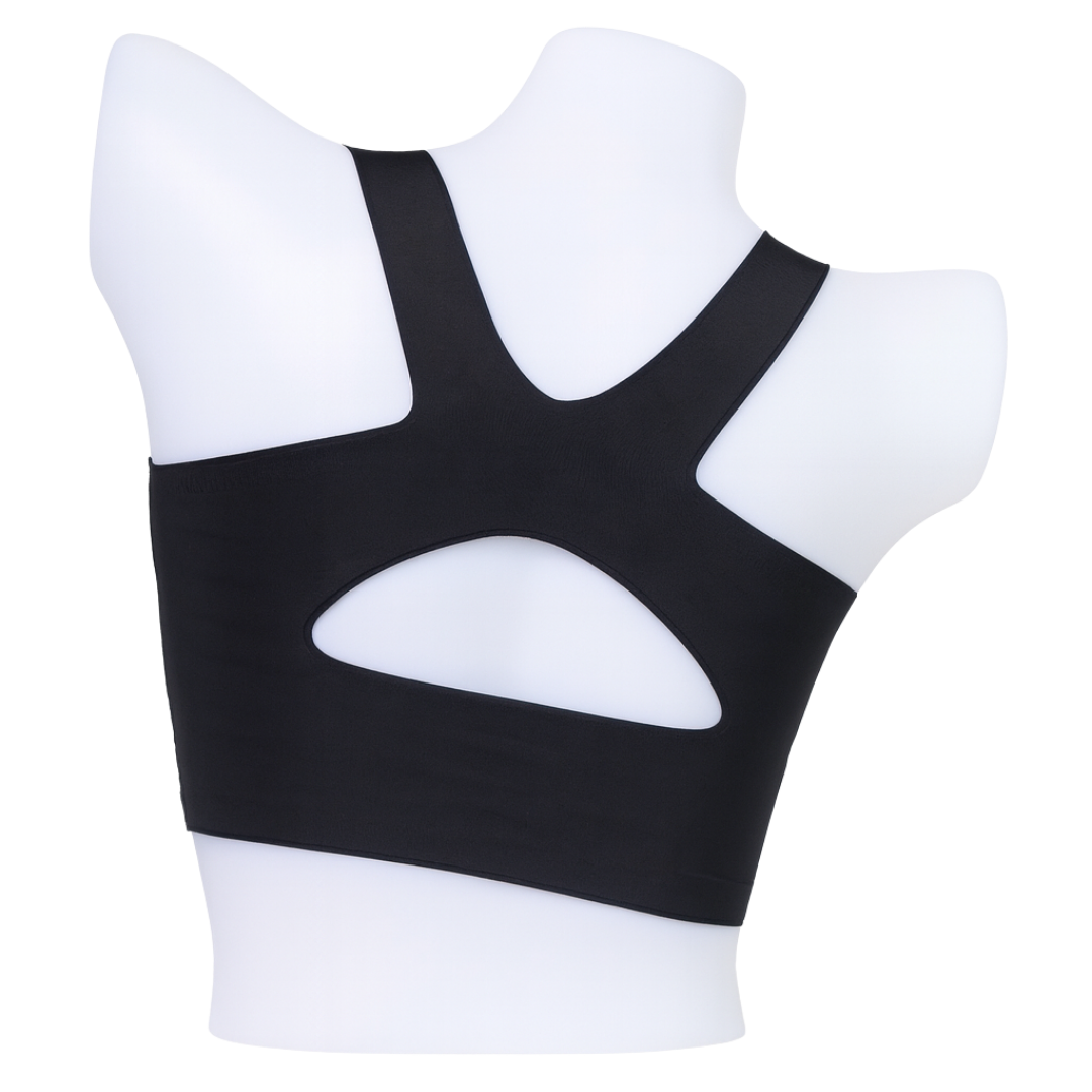 Cross-front band + racerback for secure, stay-put comfort